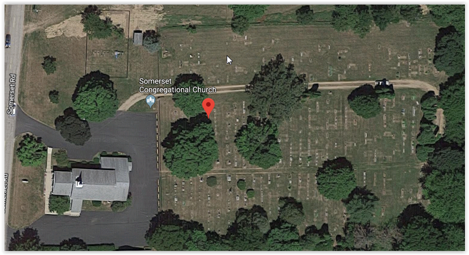 Notes: Same as Somerset Cemetery, by Somerset Congregational Church on Somerset Rd. Cemeetery entrance: Aerial view of cemetery: