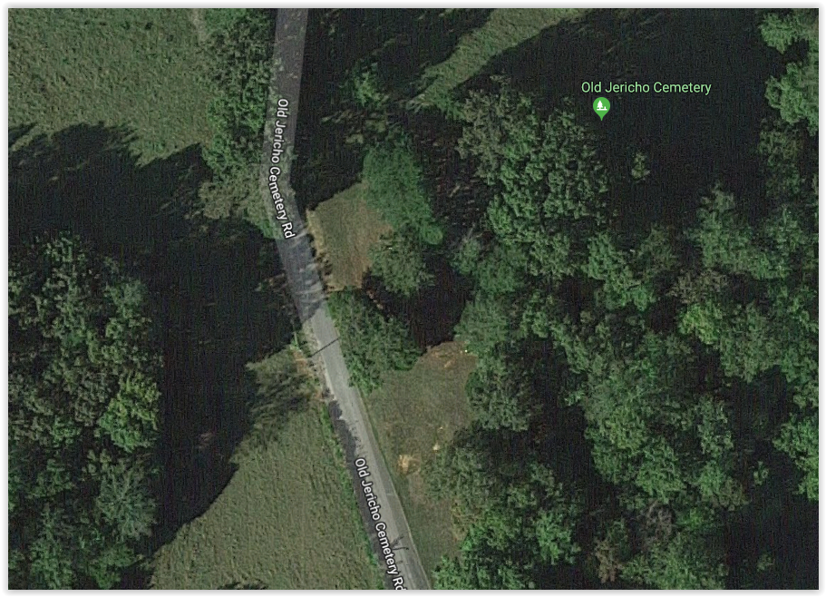 Also called Old Jericho Cemetery and Old Walling Graveyard, located on Old Jericho Cemetery Rd., north of Quebeck (northeast of Walling). McMinnville Hwy. east from Walling to Quebeck, then north on Quebeck Rd. Turn right on Jericho Rd. (which continues north) past Jericho Church and Jericho Cemetery, then turn left on Old Jericho Cemetery Rd. The cemetery is a short distance on the east side of the road (on the right), set back in the trees fairly close to the road. (Looking at an aerial view, it appears there "may" be some gravestones on the left side of the road also.)